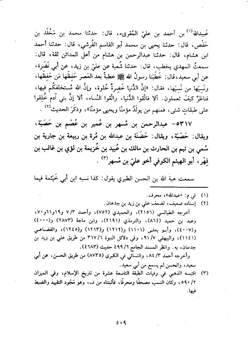 5317 - عبد الرحمن بن مسهر بن عمير بن عصم بن حصبة ويقَالَ حصبة ويقَالَ حضنة بن عبد اللَّه بن مرة بن ربيعة بن جارية بن سمي بن تيم بن الحارث بن مالك بن عبيد بن خزيمة بن لؤي بن غالب بن فهر أبو الهيثم الْكُوفِيّ أخو علي بن مسهر