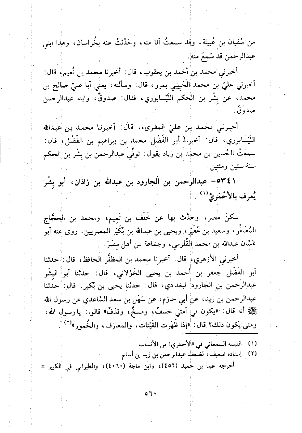 5341 - عبد الرحمن بن الجارود بن عبد اللَّه بن زاذان أبو بشر يعرف بالأحمري سكن مصر، وحدث بها عن خلف بن تميم، ومُحَمَّد بن الحجاج المصفر، وسعيد بن عفير، ويَحْيَى بن عبد اللَّه بن بكير المصريين.