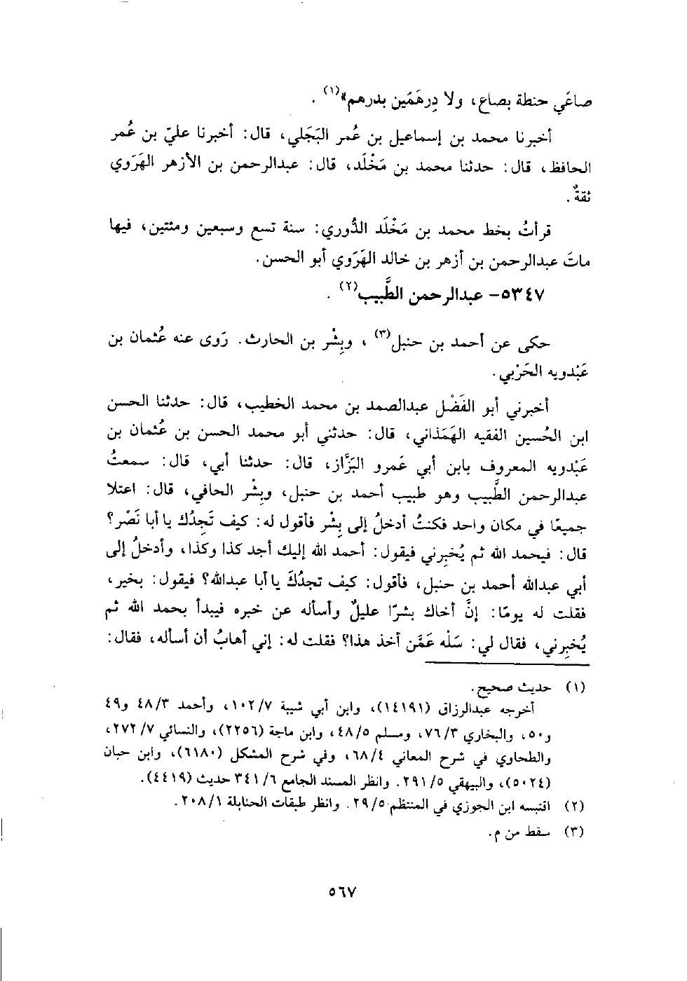 5347 - عبد الرحمن الطبيب حكى عن أَحْمَد بْن حنبل، وبشر بن الحارث.