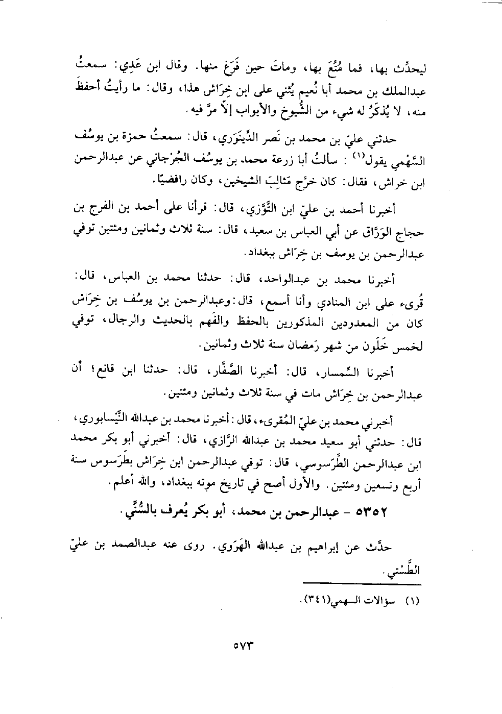 5352 - عبد الرحمن بن مُحَمَّد أبو بكر يعرف بالسني حدث عن إِبْرَاهِيم بن عبد اللَّه الهروي.