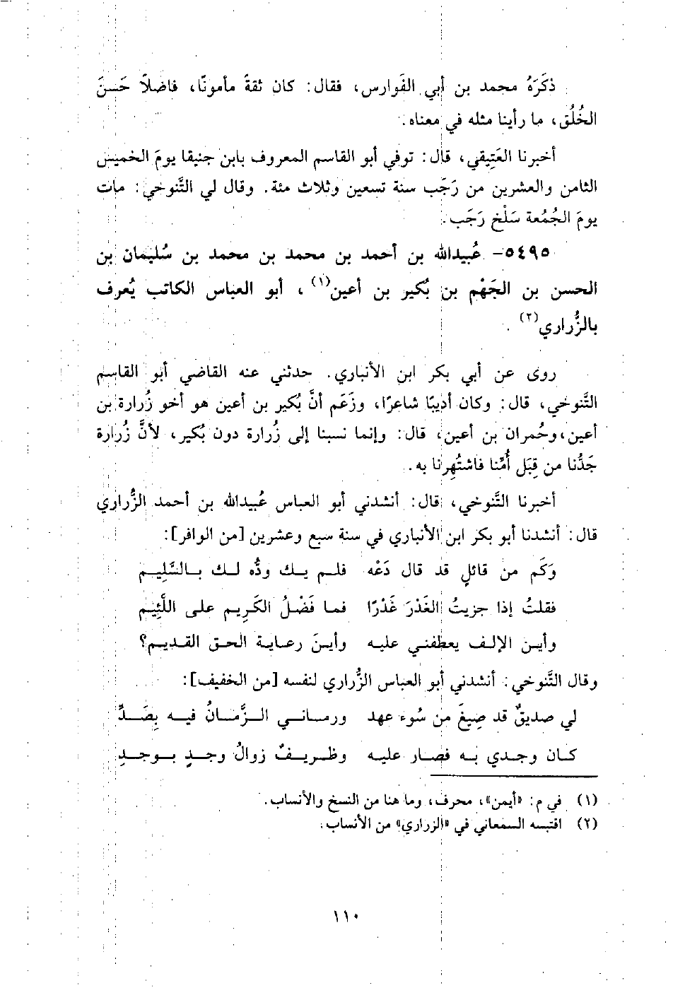 5495 - عبيد الله بن أحمد بن محمد بن محمد بن سليمان بن الحسن بن الجهم بن بُكَيْر بْن أعين أبو العباس الكاتب يعرف بالزراري