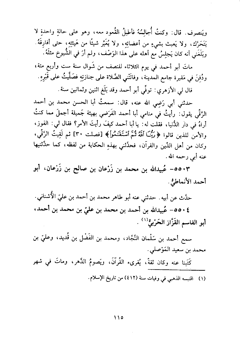 5504 - عبيد الله بن أحمد بن محمد بن علي بن محمد بن أحمد أبو القاسم القزاز الحربي سمع أحمد بن سلمان النجاد، ومحمد بن الفضل بن قديد، وعلي بن محمد بن سعيد الموصلي.