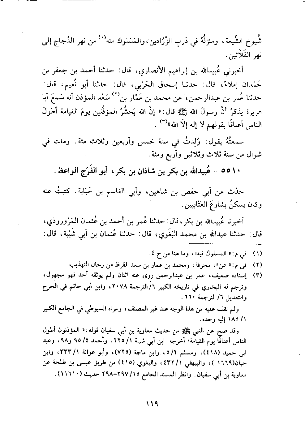 5510 - عبيد الله بن بكر بن شاذان بن بكر، أبو الفرج الواعظ حدث عن أبي حفص بن شاهين، وأبي القاسم بن حبابة.
