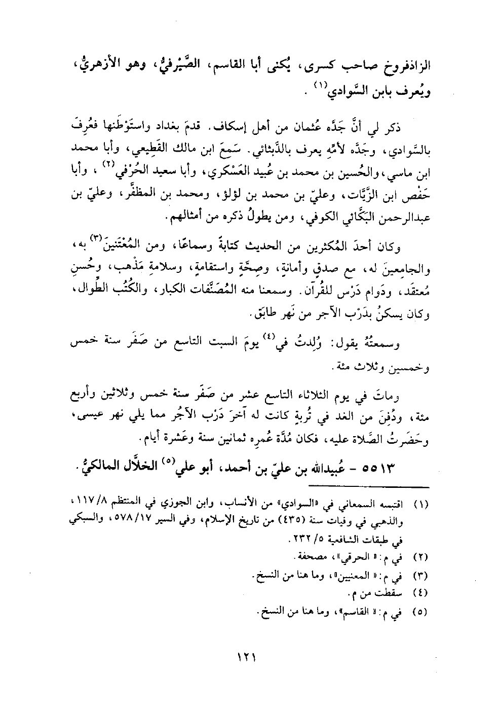5513 - عبيد الله بن علي بن أحمد أبو علي الخلال المالكي بغدادي، سمع محمد بن إسماعيل الوراق، وأبا حفص بن شاهين.