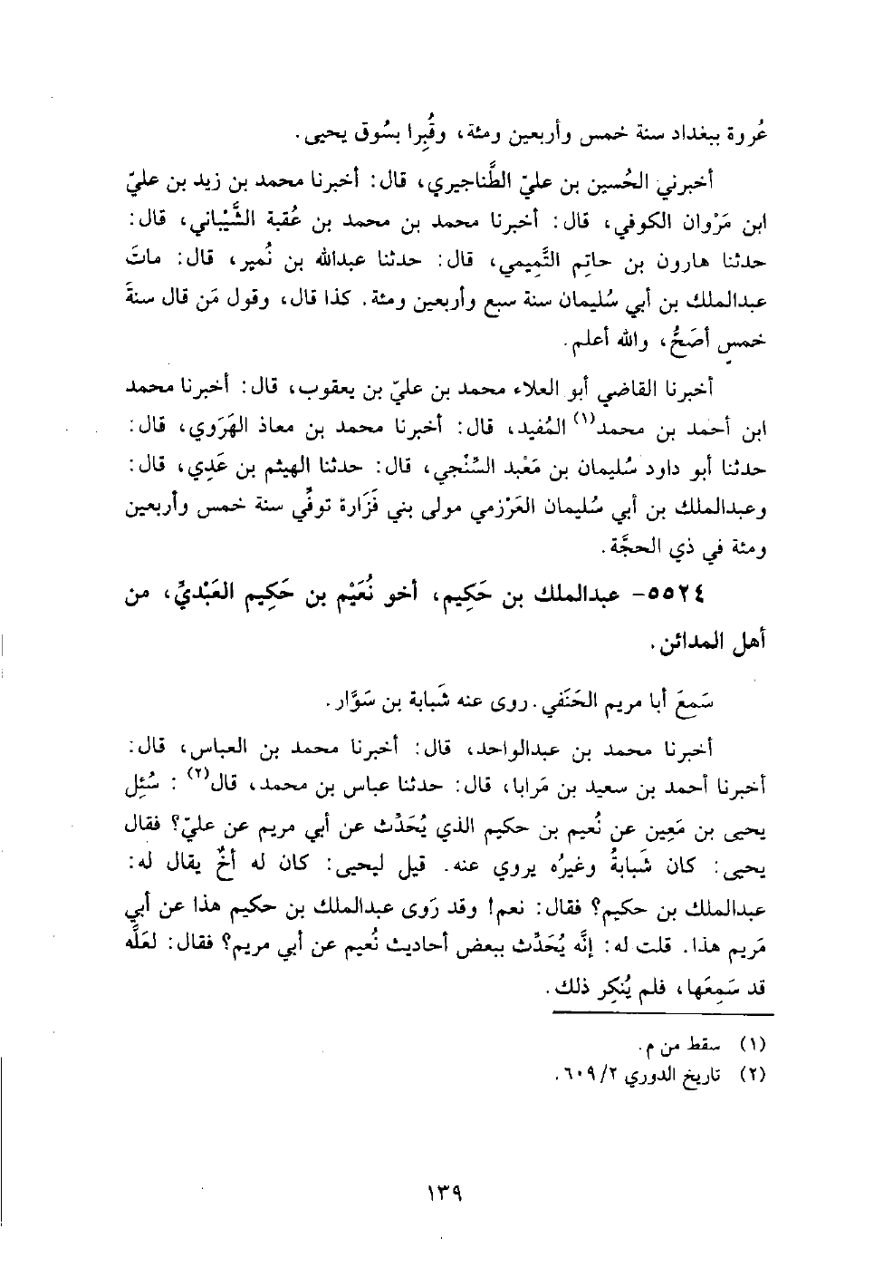5524 - عبد الملك بن حكيم أخو نعيم بن حكيم العبدي، من أهل المدائن، سمع أبا مريم الحنفي.
