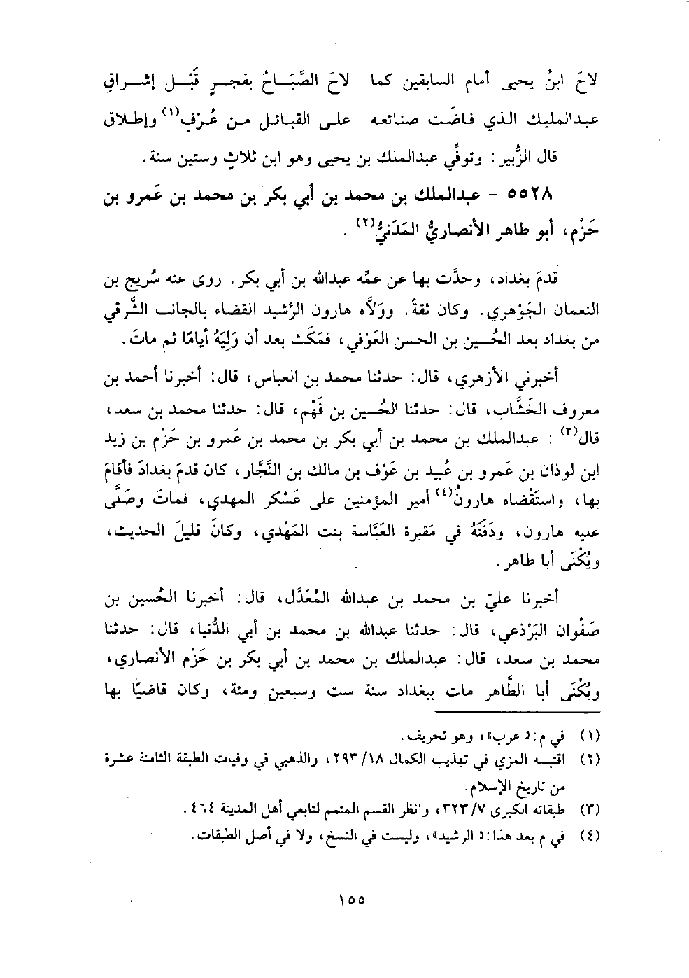 5528 - عبد الملك بن محمد بن أبي بكر بن محمد بن عمرو بن حزم أبو طاهر الأنصاري المدني قدم بغداد، وحدث بها عن عمه عبد الله بن أبي بكر.
