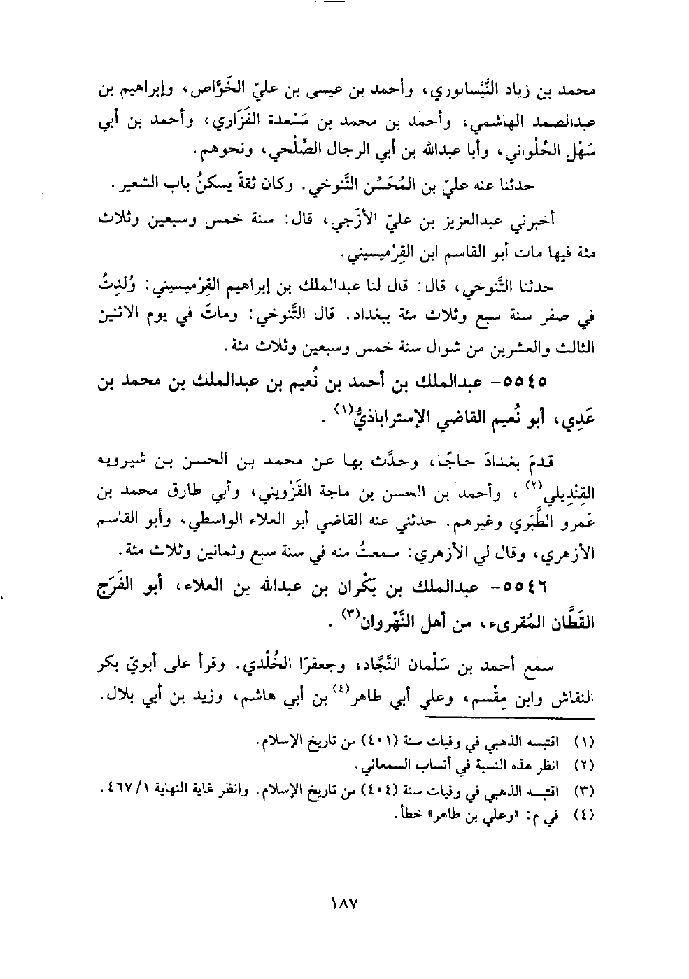 5546 - عبد الملك بن بكران بن عبد الله بن العلاء أبو الفرج القطان المقرئ من أهل النهروان، سمع: أحمد بن سلمان النجاد، وجعفر الخلدي.