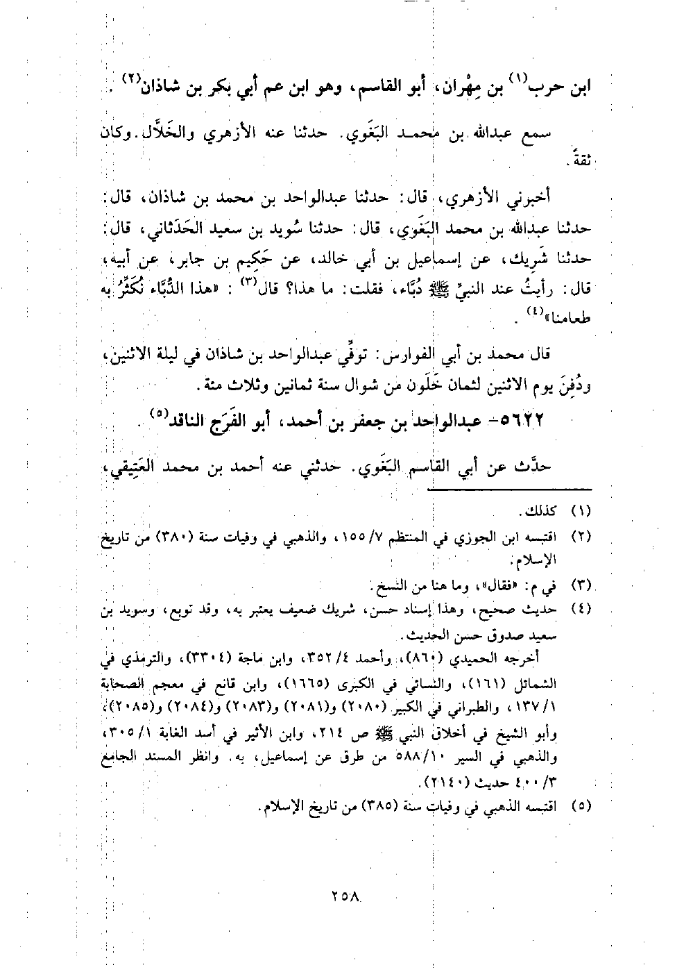 5622 - عبد الواحد بن جعفر بن أحمد أبو الفرج الناقد حدث عن أبي القاسم البغوي.