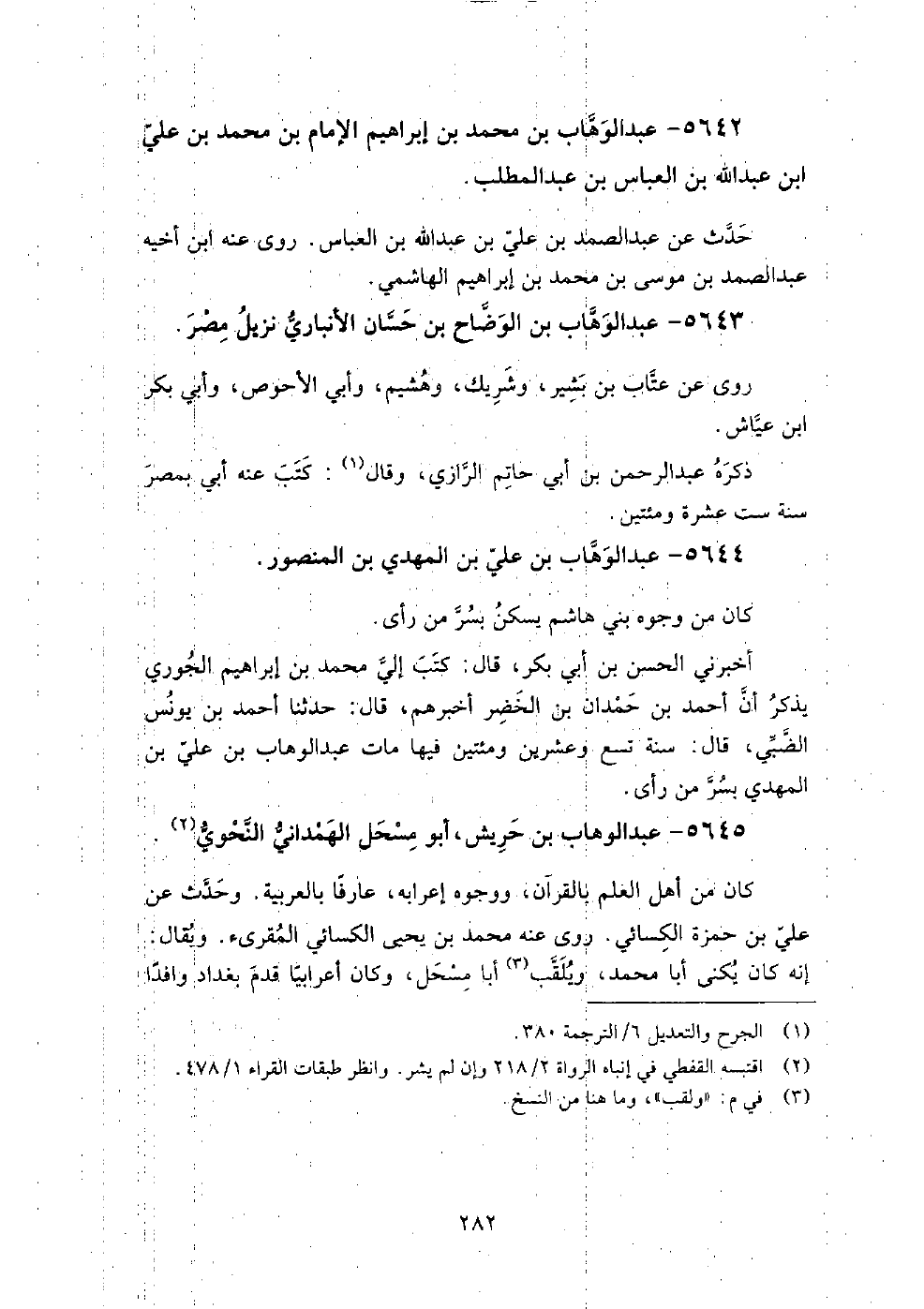 5644 - عبد الوهاب بن علي بن المهدي بن المنصور كان من وجوه بني هاشم يسكن بسر من رأى.