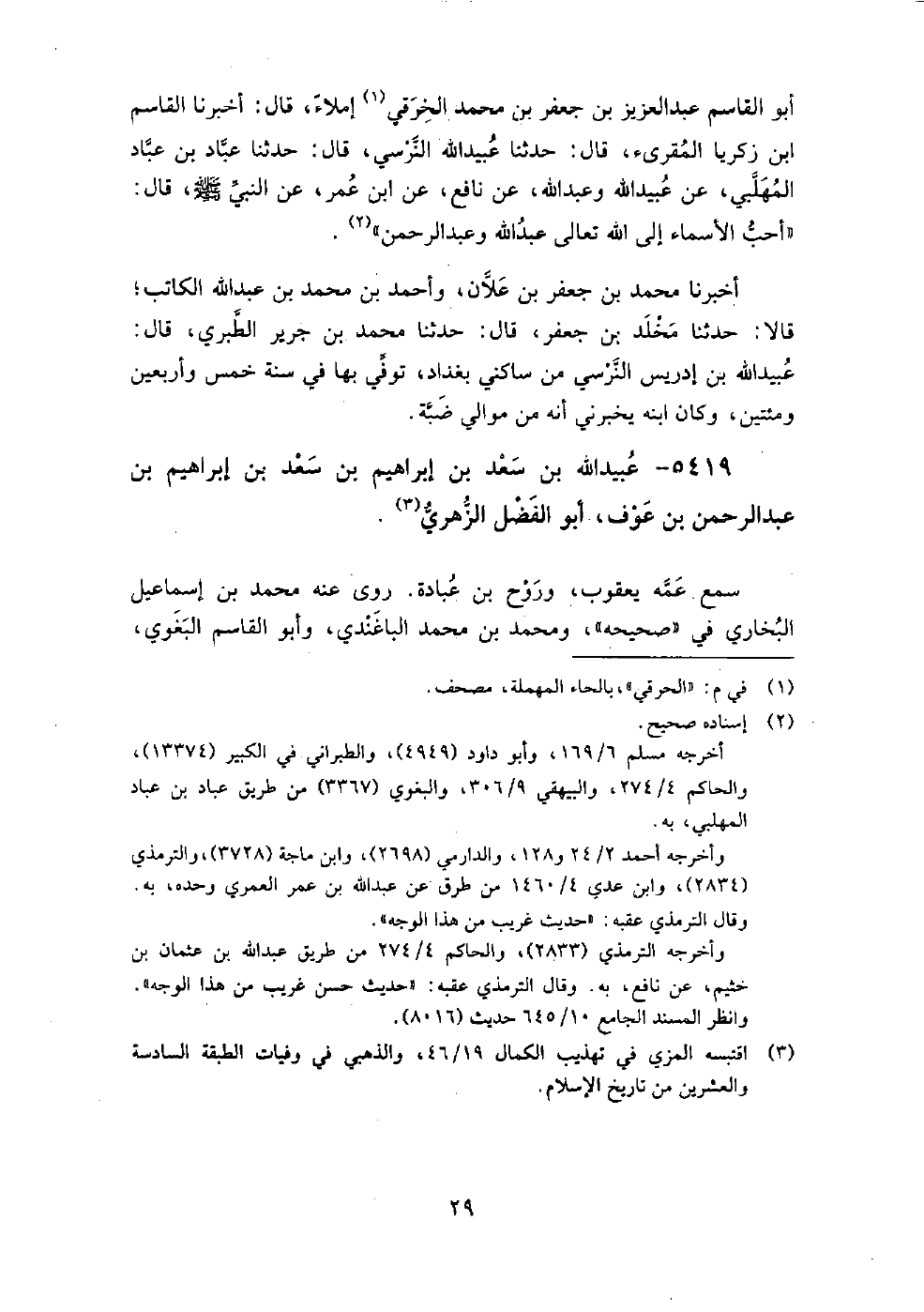 5419 - عبيد الله بن سعد بن إبراهيم بن سعد بن إبراهيم بن عبد الرحمن بن عوف أبو الفضل الزهري سمع: عمه يعقوب، وروح بن عبادة.