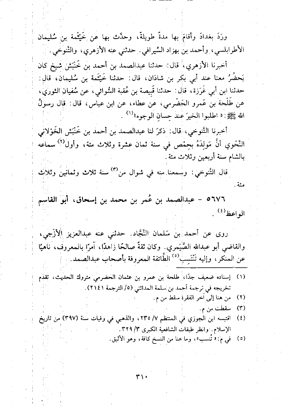 5676 - عبد الصمد بن عمر بن محمد بن إسحاق أبو القاسم الواعظ روى عن أحمد بن سلمان النجاد.