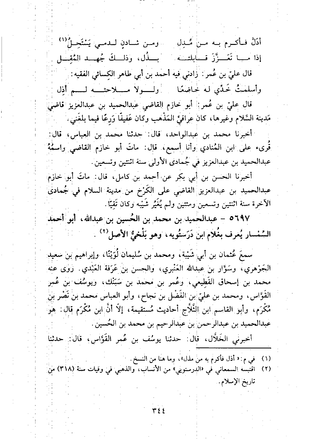 5697 - عبد الحميد بن محمد بن الحسين بن عبد الله، أبو أحمد السمسار يعرف بغلام ابن درستويه وهو بلخي الأصل،