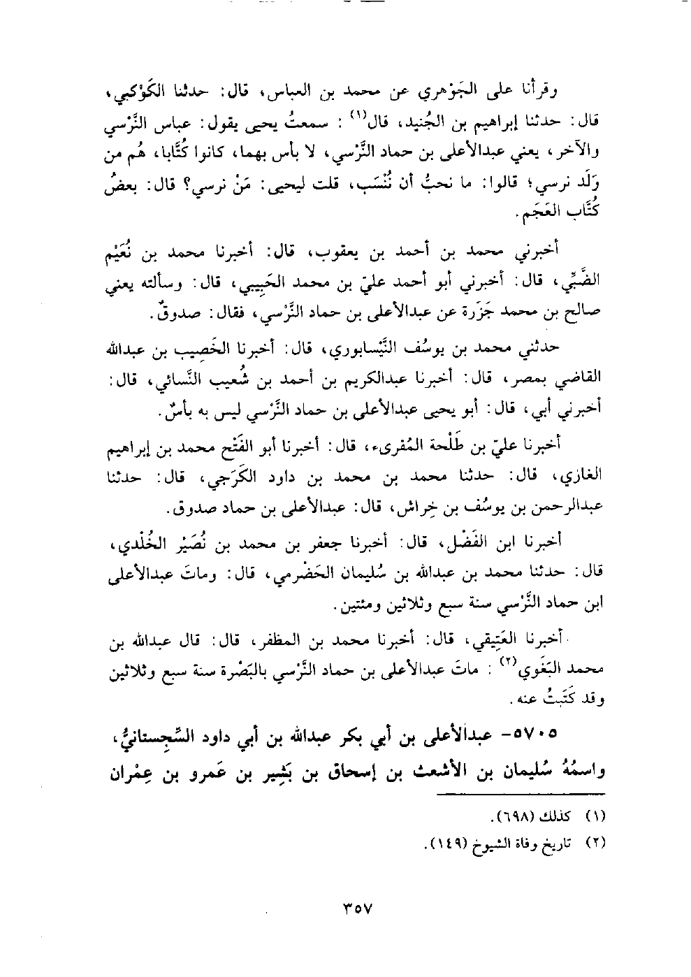 5705 - عبد الأعلى بن أبي بكر عبد الله بن أبي داود السجستاني واسمه سليمان بن الأشعث بن إسحاق بن بشير بن عمرو بن عمران الأزدي وكنية عبد الأعلى أبو أحمد، حدث عن أبيه.