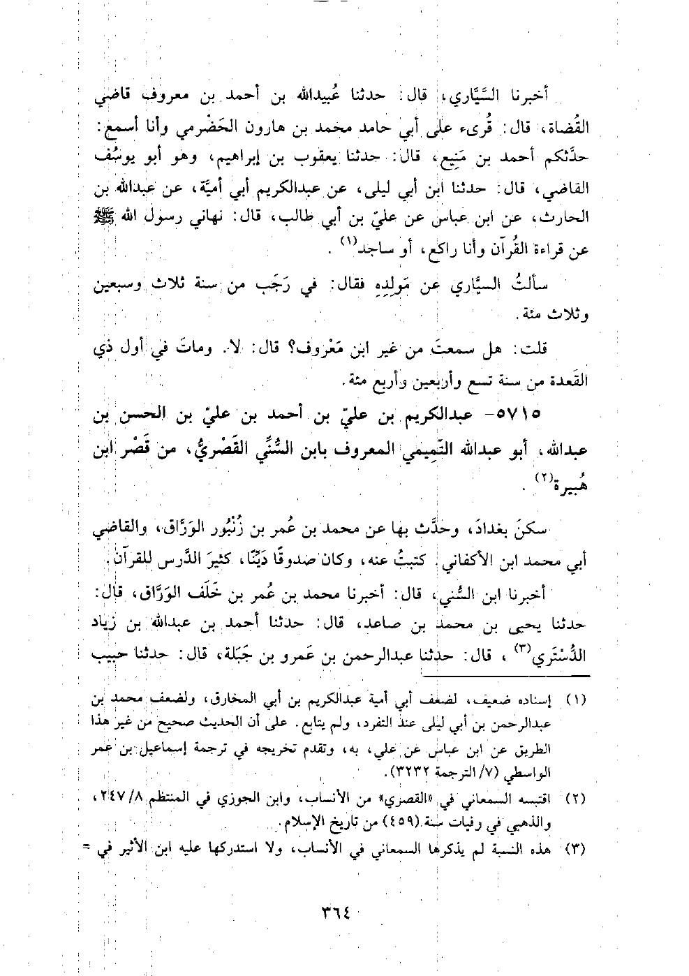 5715 - عبد الكريم بن علي بن أحمد بن علي بن الحسن بن عبد الله، أبو عبد الله التميمي المعروف بابن السني القصري من قصر ابن هبيرة.