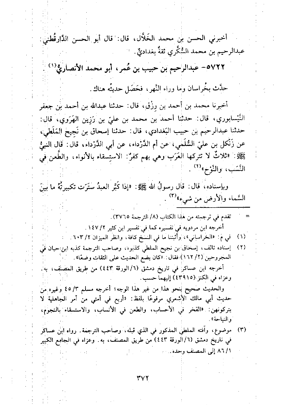 5722 - عبد الرحيم بن حبيب بن عمر، أبو محمد الْأَنْصَارِيّ حدث بخراسان وما وراء النهر فحصل حديثه هناك.