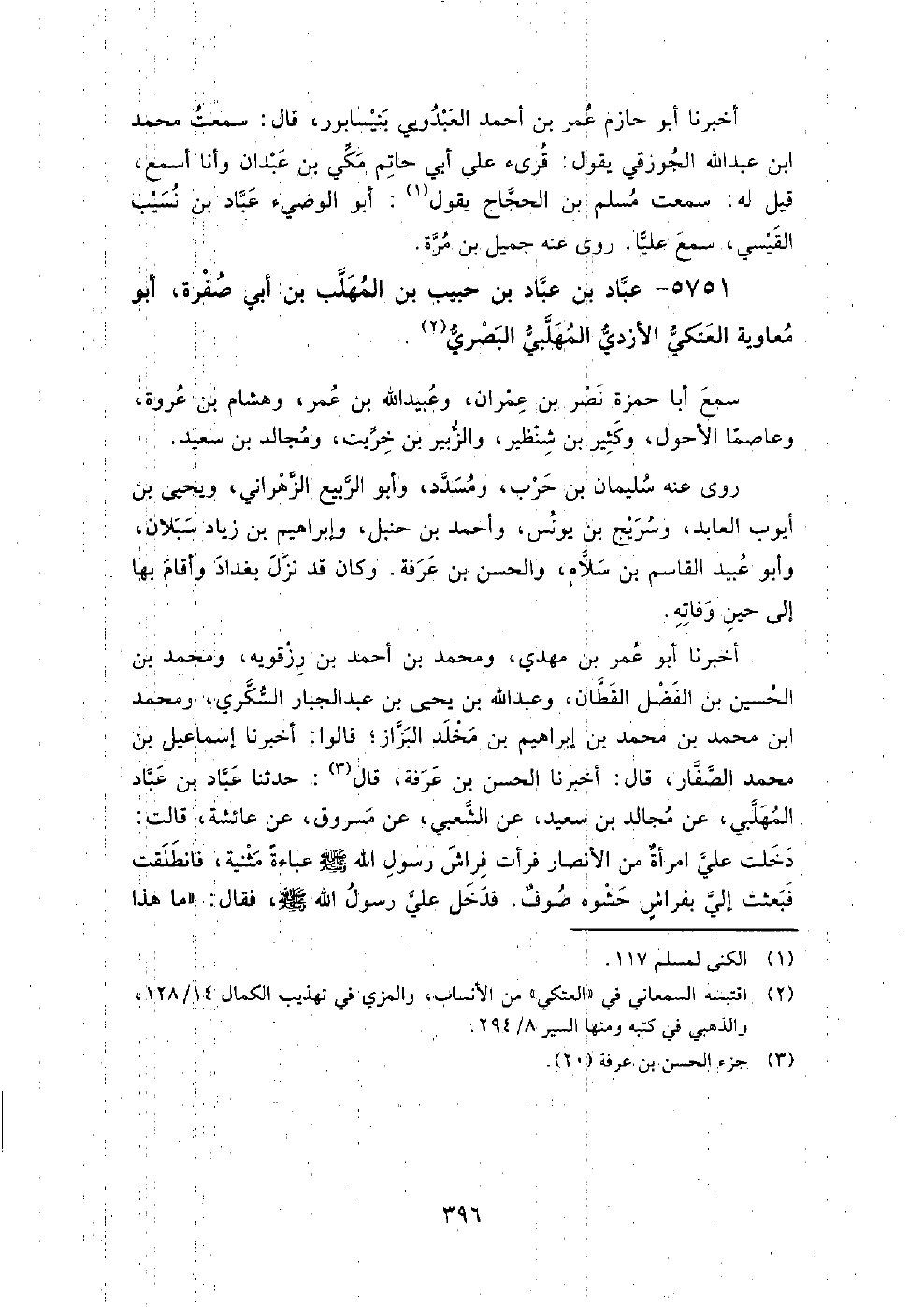 5751 - عباد بن عباد بن حبيب بن أبي المهلب بن أبي صفرة أبو معاوية العتكي الأزدي المهلبي البصري سمع: أبا حمزة نصر بن عمران، وعبيد الله بن عمر، وهشام بن عروة، وعاصما الأحول، وكثير بن شنظير، والزبير بن خريت، ومجالد بن سعيد.
