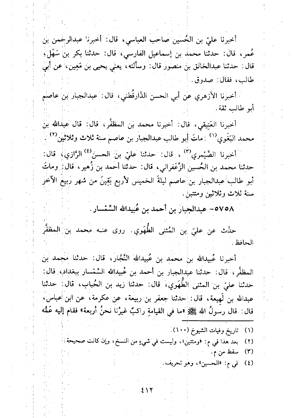 5758 - عبد الجبار بن أحمد بن عبيد الله السمسار حدث عن علي بن المثنى الطهوي.