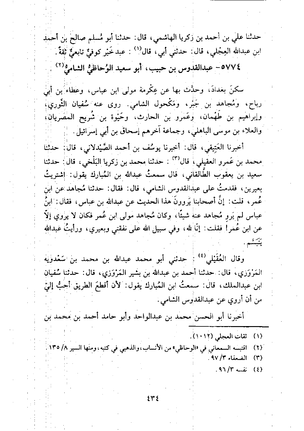 5774 - عبد القدوس بن حبيب أبو سعيد الوحاظي الشامي سكن بغداد، وحدث بها عن عكرمة مولى ابن عباس، وعطاء بن أبي رباح، ومجاهد بن جبر، ومكحول الشامي.