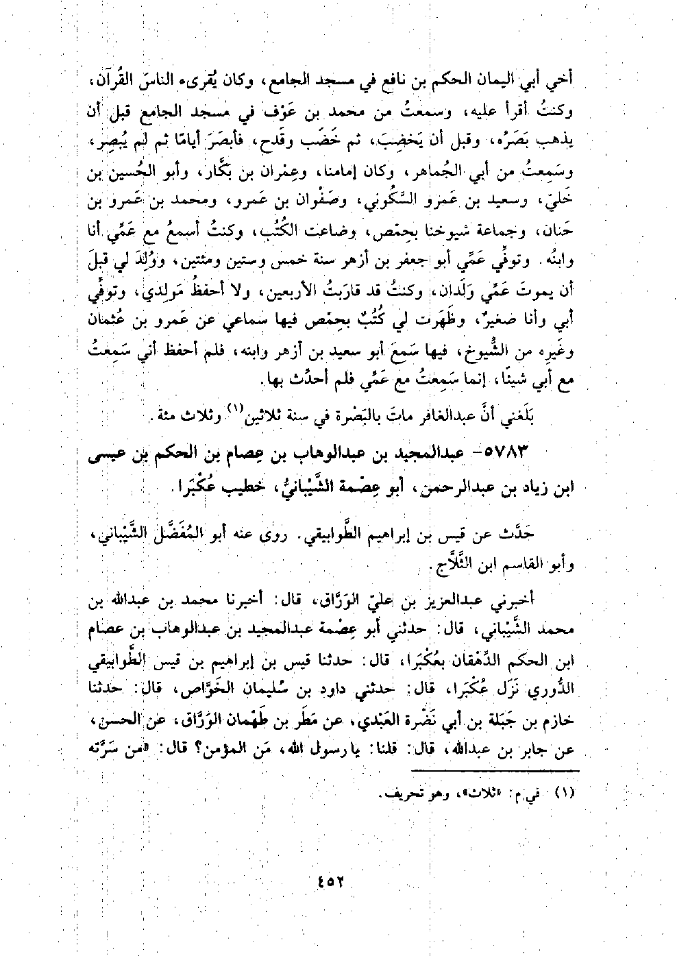 5783 - عبد المجيد بن عبد الوهاب بن عصام بن الحكم بن عيسى بن زياد بن عبد الرحمن، أبو عصمة الشيباني، خطيب عكبرا حدث عن قيس بن إبراهيم الطوابيقي.