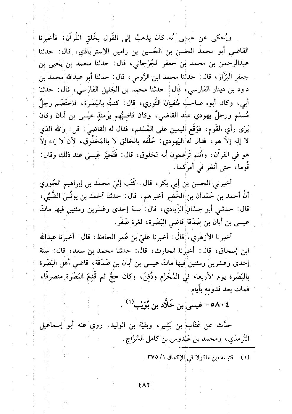 5804 - عيسى بن خلاد بن بويب حدث عن عتاب بن بشير، وبقية بن الوليد.