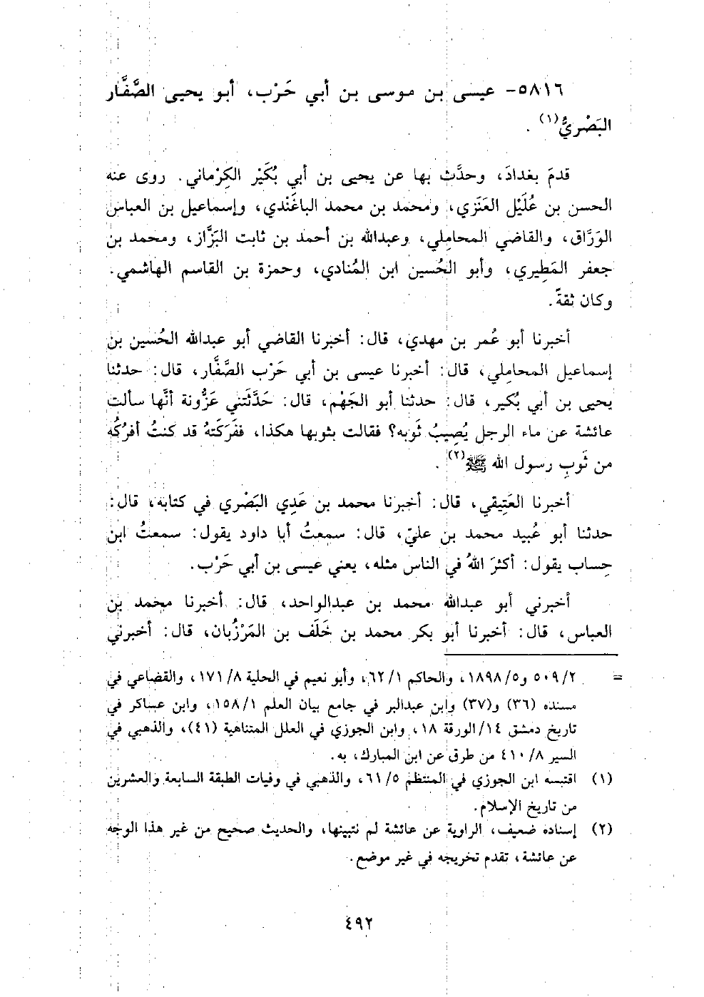 5816 - عيسى بن موسى بن أبي حرب، أبو يحيى الصفار البصري قدم بغداد، وحدث بها عن يحيى بن أبي بكير الكرماني.