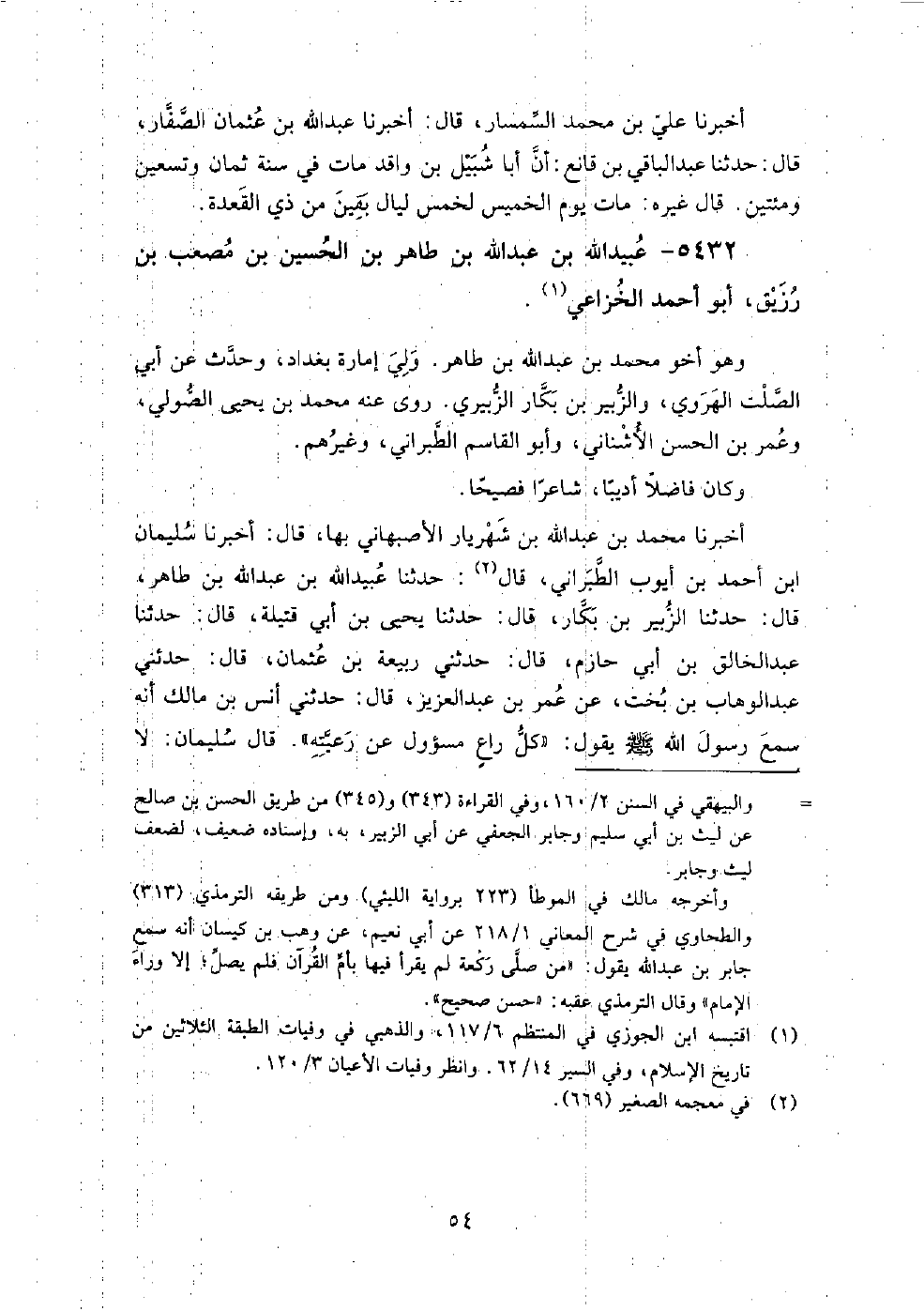 5432 - عبيد الله بن عبد الله بن طاهر بن الحسين بن مصعب بن رزيق أبو أحمد الخزاعي وهو أخو محمد بن عبد الله بن طاهر.