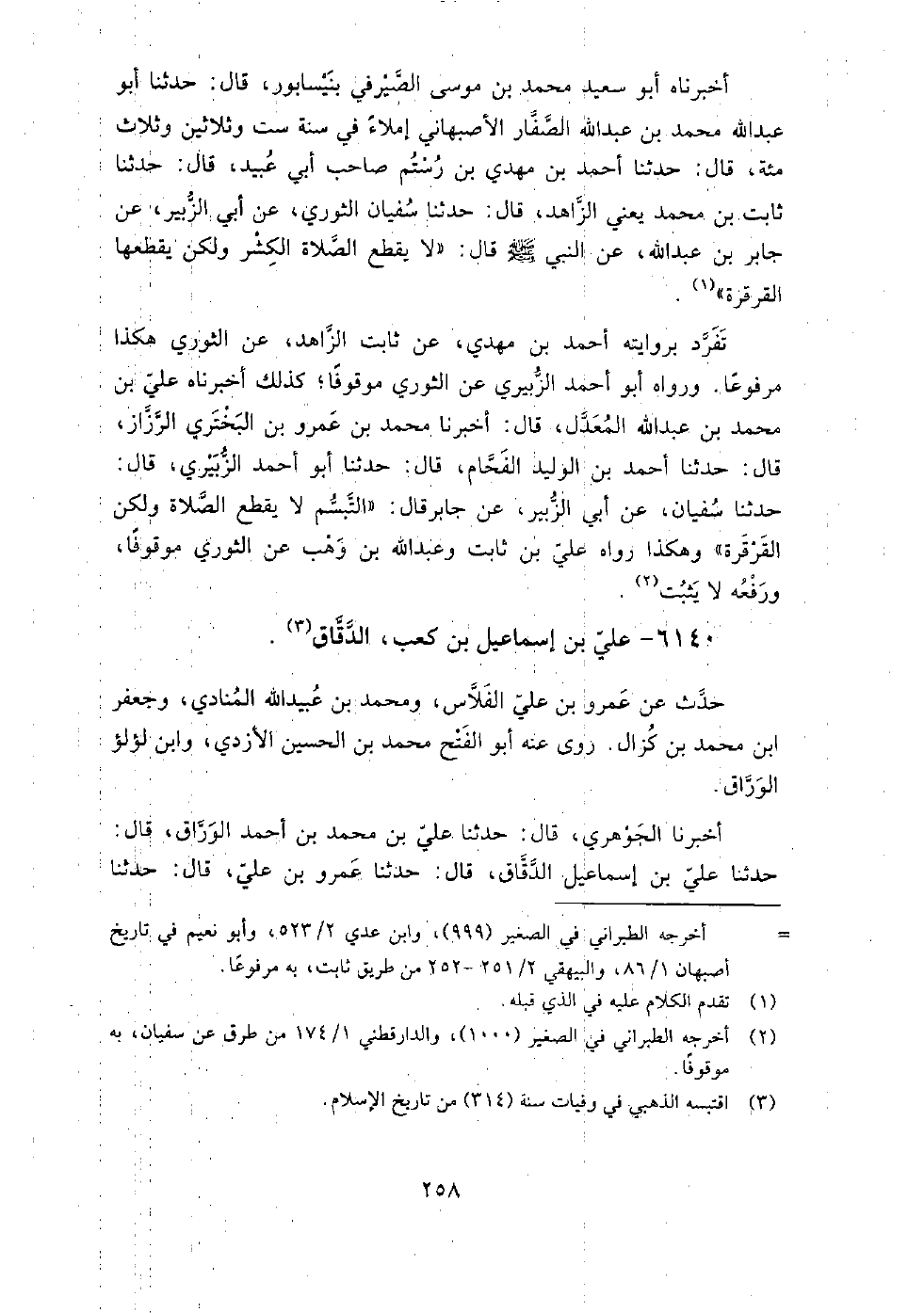 6140 - علي بْن إِسْمَاعِيل بْن كعب الدقاق حدث عَن عَمْرو بْن علي الفلاس، ومحمد بْن عبيد اللَّه المنادي، وجعفر بْن مُحَمَّد بْن كزال.