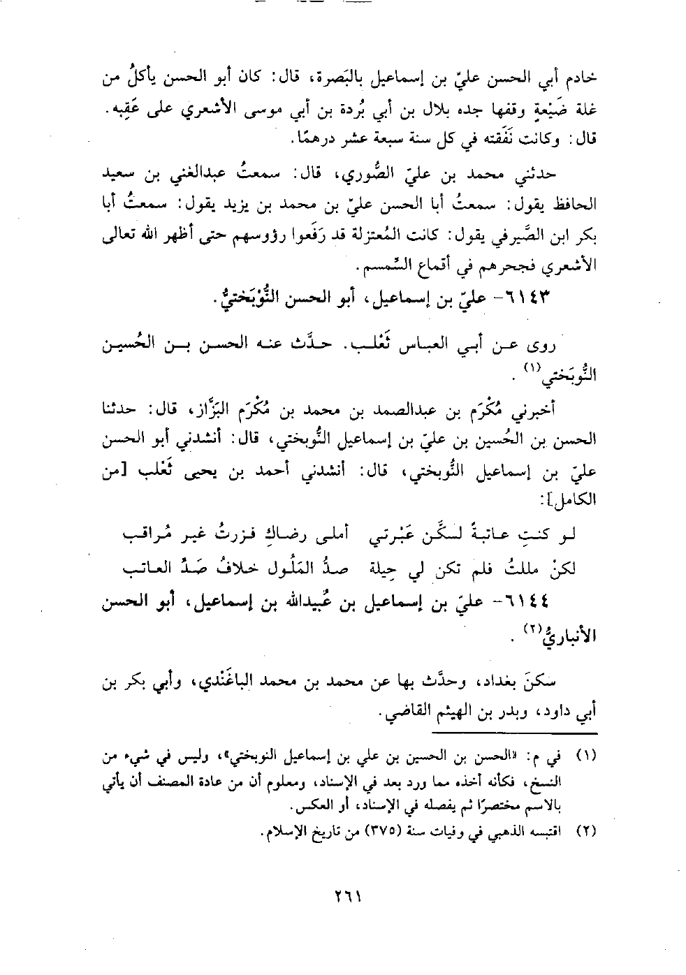 6143 - علي بْن إِسْمَاعِيل أَبُو الحسين النوبختي روى عَن أَبِي العباس ثعلب.