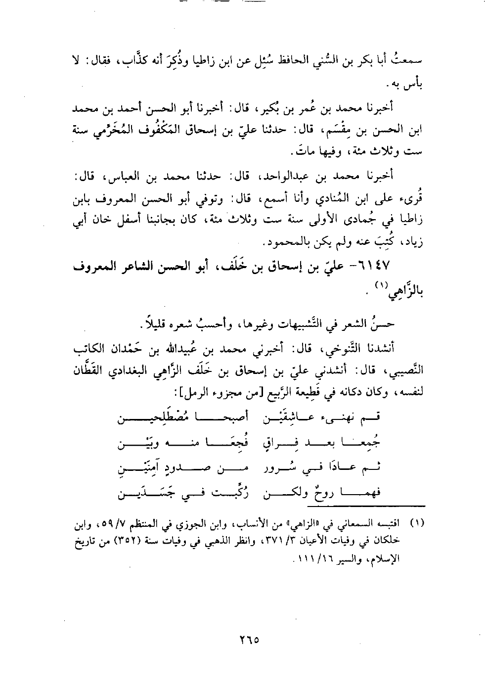 6147 - علي بْن إِسْحَاق بْن خلف أَبُو الحسن الشاعر المعروف بالزاهي