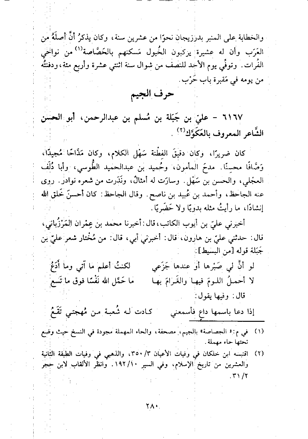 6167 - علي بْن جبلة بْن مسلم بْن عَبْد الرَّحْمَن أَبُو الحسن الشاعر المعروف بالعكوك
