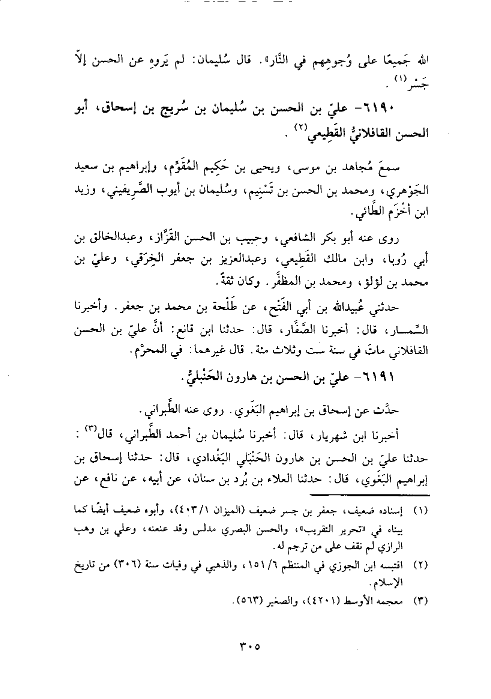 6190 - علي بْن الحسن بْن سُلَيْمَان بْن سريج بْن إِسْحَاق أَبُو الحسن القافلاني القطيعي