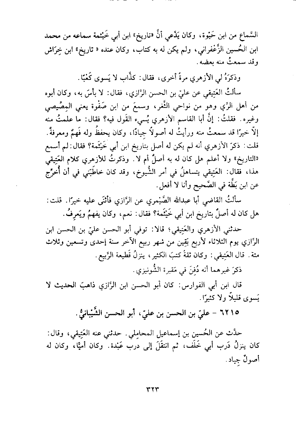 6215 - علي بْن الحسن بْن علي أَبُو الحسن الشيباني حدث عَن الحسين بْن إِسْمَاعِيل المحاملي.