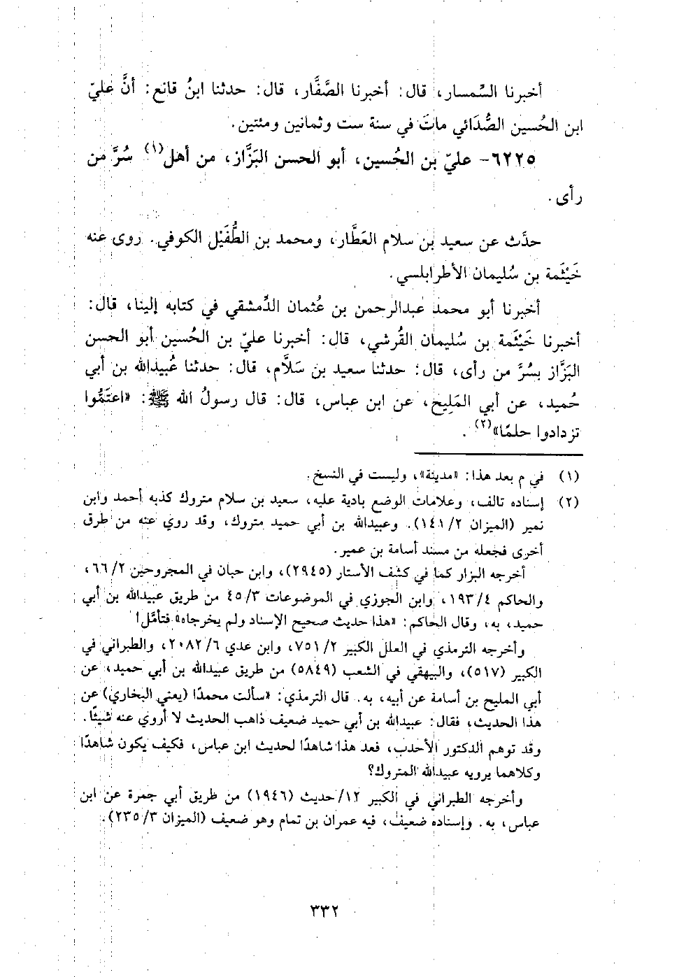 6225 - علي بْن الحسين أَبُو الحسن البزاز من أهل سر من رأى، حدث عَن سعيد بْن سلام العطار، ومحمد بْن الطفيل الكوفي.