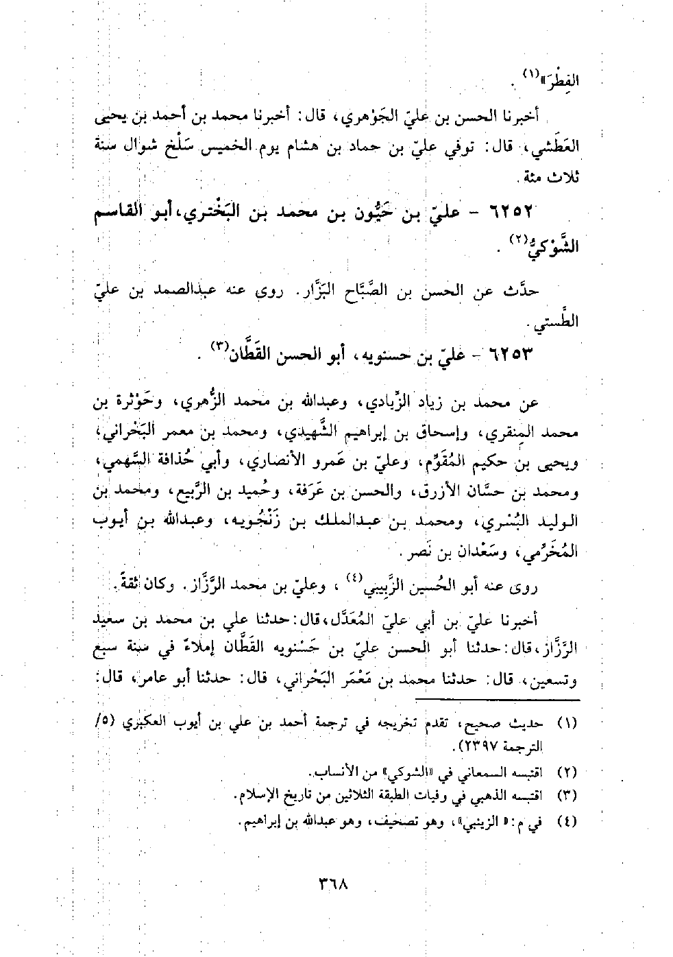 6253 - علي بْن حسنويه أَبُو الحسن القطان حدث عَن مُحَمَّد بْن زياد الزيادي، وعبد اللَّه بْن مُحَمَّد الزهري، وحوثرة بْن مُحَمَّد المنقري، وإسحاق بْن إِبْرَاهِيم الشهيدي، ومحمد بْن معمر البحراني، ويحيى بْن حكيم المقوم، وعلي بْن عَمْرو الأنصاري، وأبي حذافة السهمي، ومحمد بْن حسان الأزرق، والحسن بْن عرفة، وحميد بْن الربيع، ومحمد بْن الوليد البسري، ومحمد بْن عَبْد الملك زنجويه، وعبد اللَّه بْن أيوب المخرمي، وسعدان بْن نصر.