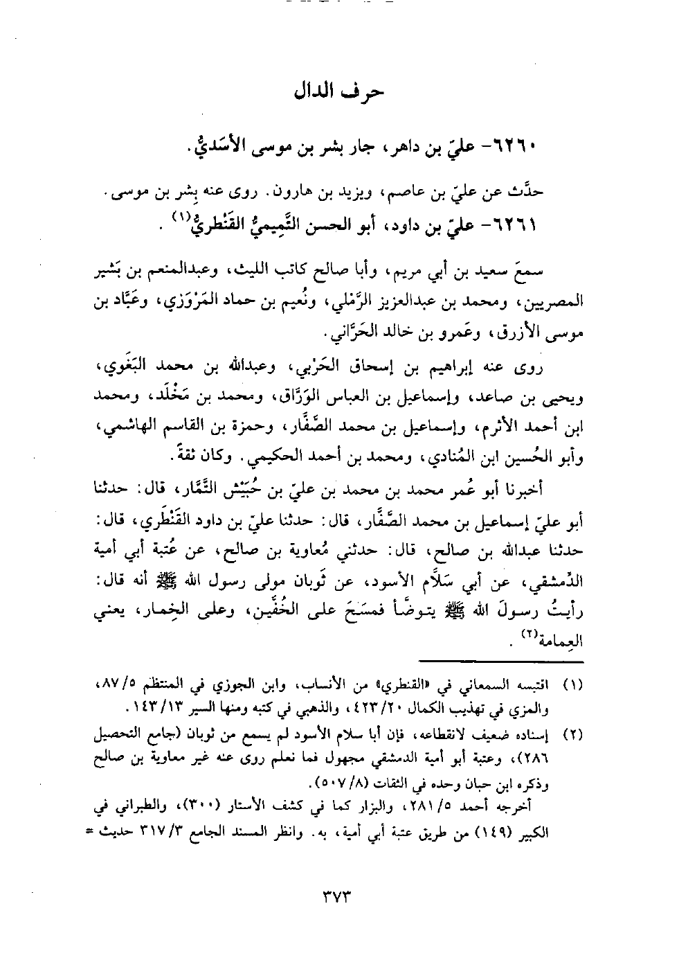 6261 - علي بْن داود أَبُو الحسن التميمي القنطري سمع سعيد بْن أَبِي مريم، وأبا صالح كاتب الليث، وعبد المنعم بْن بشير المصريين، ومحمد بْن عَبْد العزيز الرملي، ونعيم بْن حماد المروزي، وعباد بْن مُوسَى الأزرق، وعمرو بْن خالد الحراني.