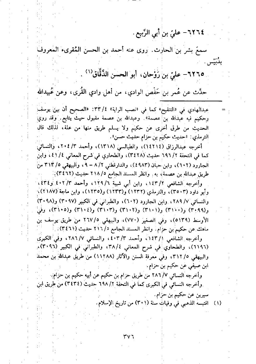 6265 - علي بْن روحان أَبُو الحسن الدقاق حدث عَن عُمَر بْن حفص الوادي من أهل وادي القرى، وعن عبيد اللَّه ابْن يُوسُف الجبيري، وزيد بْن أخزم الطائي، وعمران بْن مُحَمَّد الأنصاري، ومحمد بْن الهيثم الواسطي.