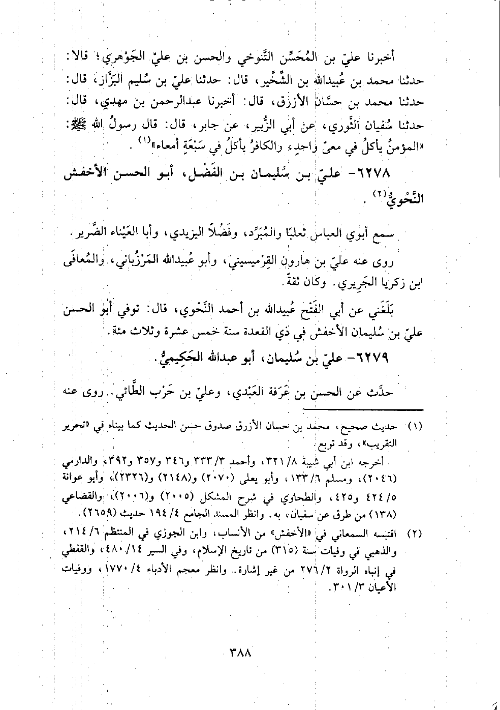 6278 - علي بْن سُلَيْمَان بْن الفضل أَبُو الحسن الأخفش النحوي سمع أبوي العباس ثعلبا، والمبرد، وفضلا اليزيدي، وأبا العيناء الضرير.