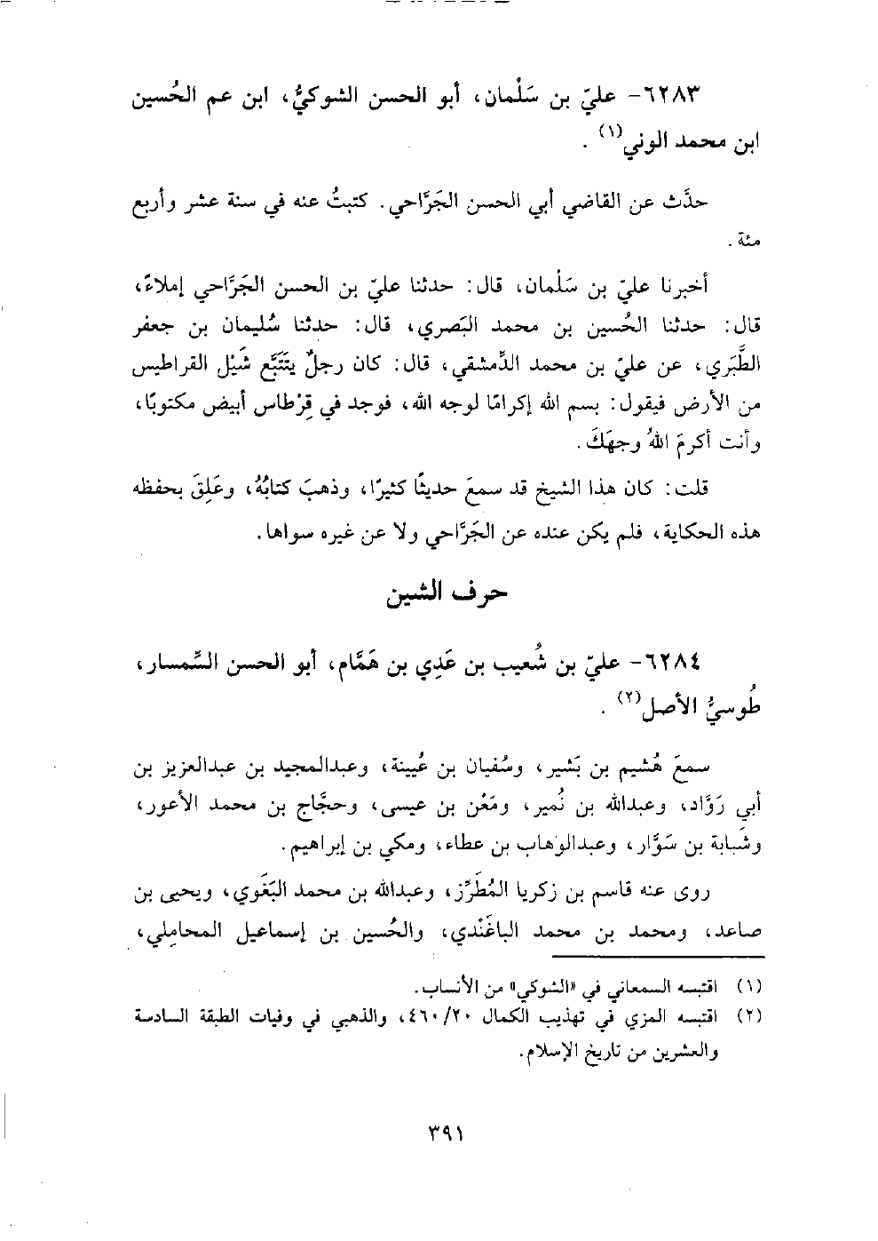 6283 - علي بْن سلمان أَبُو الحسن الشوكي ابْن عم الحسين بْن مُحَمَّد الوني حدث عَن القاضي أَبِي الحسن الجراحي، كتبت عنه فِي سنة عشر وأربع مائة.