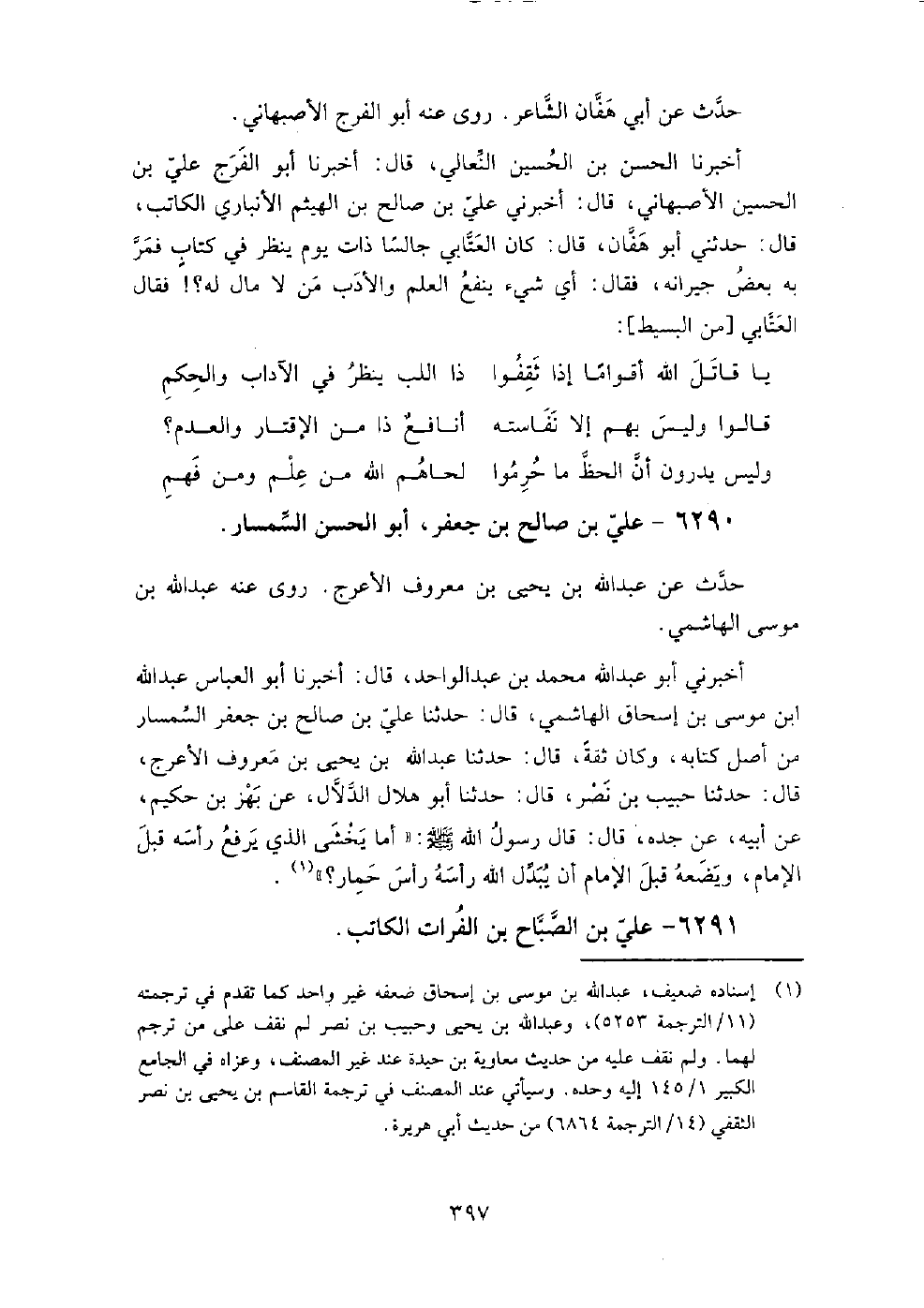 6291 - علي بْن الصباح بْن الفرات الكاتب حدث عَن أَبِي عَمْرو الشيباني، وعلي بْن عاصم، وهشام بْن مُحَمَّد الكلبي.