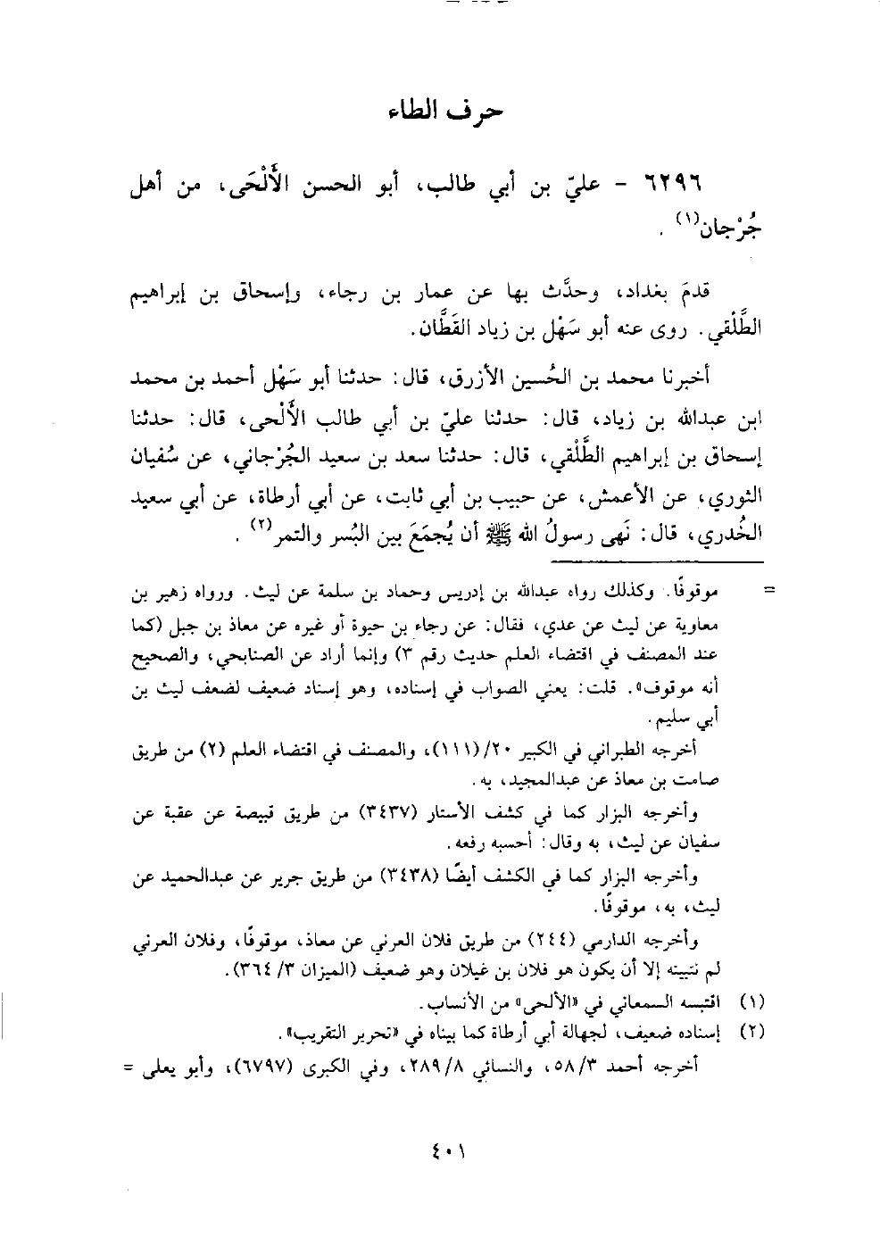 6296 - علي بْن أَبِي طالب أَبُو الحسن الألحي من أهل جرجان،