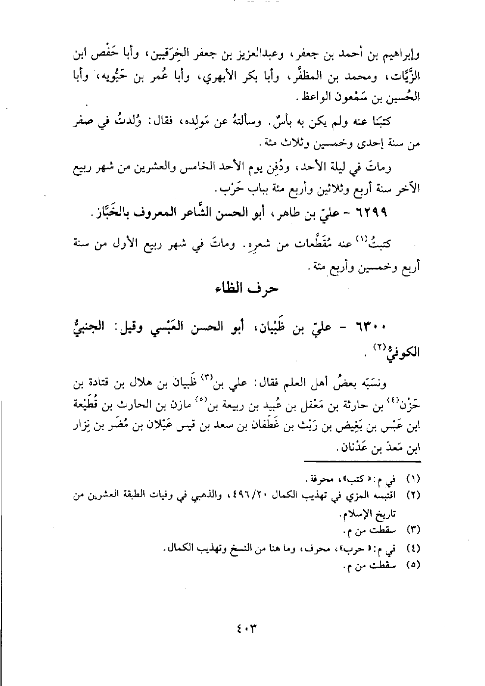 6299 - علي بْن طاهر أَبُو الحسن الشاعر المعروف بالخباز كتبت عنه مقطعات من شعره.
