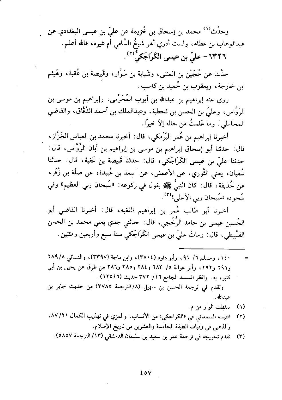 6326 - على بْن عيسى الكراجكي حدث عَن حجين بْن المثنى، وشبابة بْن سوار، وقبيصة بْن عقبة، وهيثم بْن خارجة، ويعقوب بْن حميد بْن كاسب.