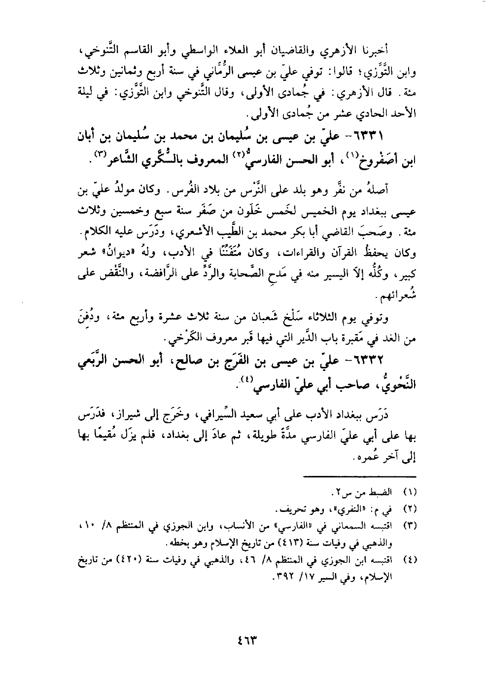 6331 - علي بْن عيسى بْن سُلَيْمَان بْن مُحَمَّد بْن سُلَيْمَان بْن أبان بْن أصفروخ أَبُو الحسن الفارسي المعروف بالسكري الشاعر