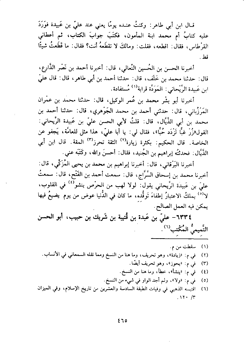 6334 - علي بْن عبدة بْن قتيبة بْن شريك بْن حبيب أَبُو الحسن التميمي المكتب