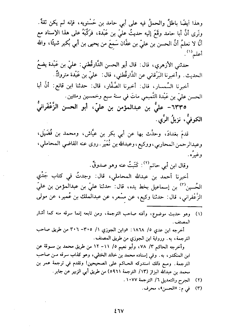 6335 - علي بْن عَبْد المؤمن بْن علي أَبُو الحسن الزعفراني الكوفي نزيل الري