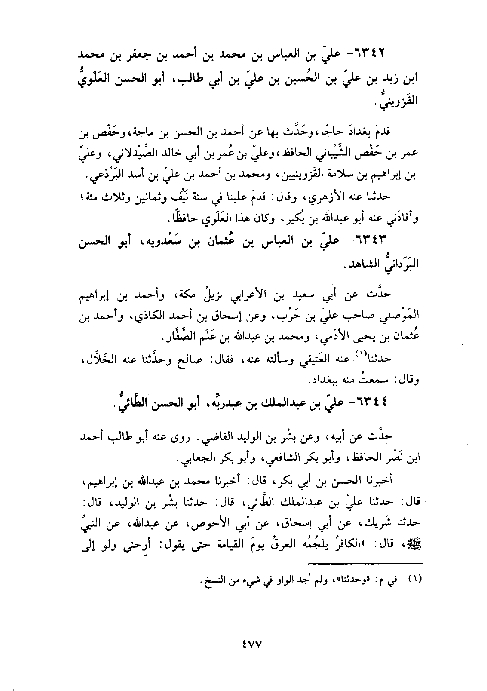 6342 - علي بْن العباس بْن مُحَمَّد بْن أَحْمَد بْن جعفر بْن مُحَمَّد بْن زيد بْن علي بْن الحسين بْن علي بْن أَبِي طالب أَبُو الحسن العلوي القزويني
