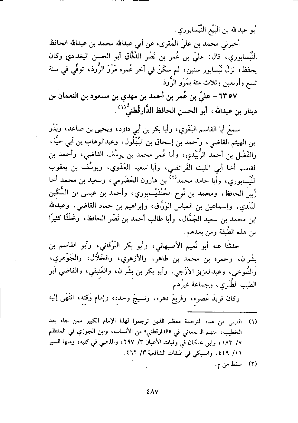 6357 - علي بْن عُمَر بْن أَحْمَد بْن مهدى بْن مسعود بْن النعمان بْن دينار بْن عَبْد اللَّه أَبُو الحسن الحافظ الدارقطني