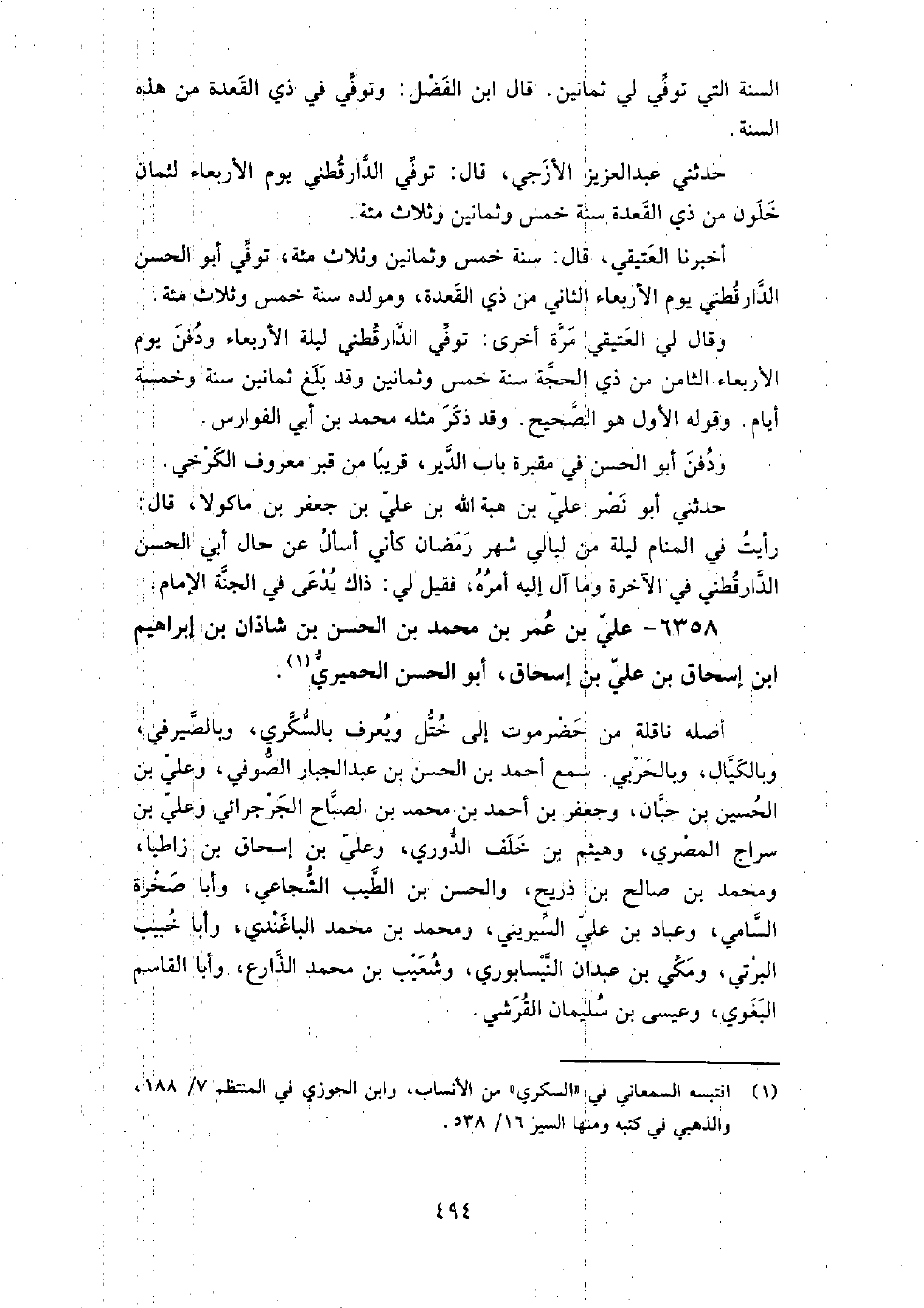 6358 - علي بْن عُمَر بْن مُحَمَّد بْن الحسن بْن شاذان بْن إِبْرَاهِيم بْن إِسْحَاق بْن علي بْن إِسْحَاق أَبُو الحسن الحميري