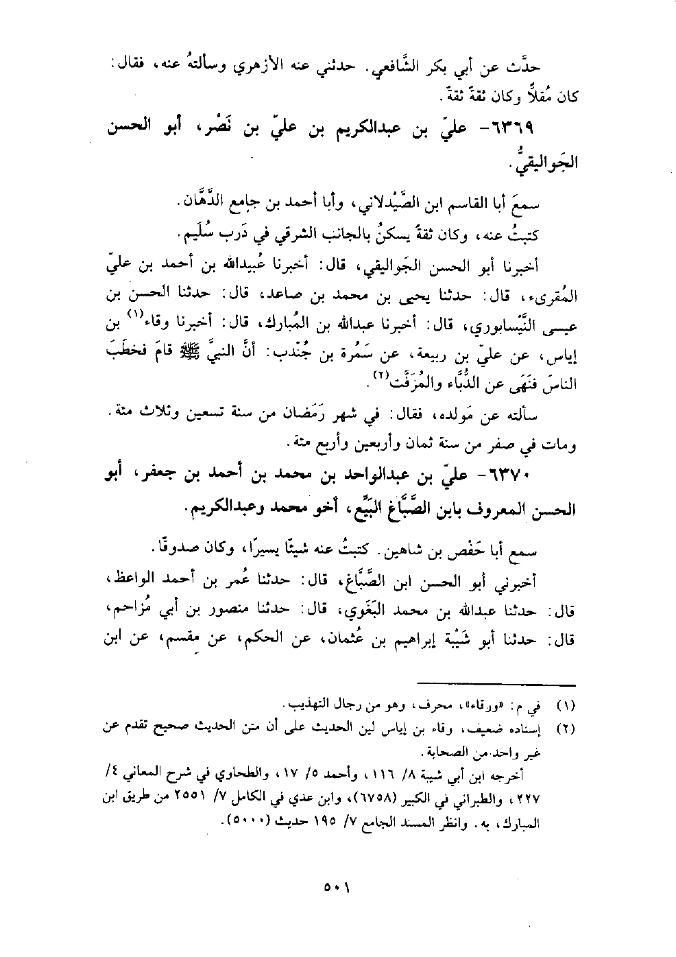 6370 - علي بْن عَبْد الواحد بْن مُحَمَّد بْن أَحْمَد بْن جعفر أَبُو الحسن المعروف بابن الصباغ البيع أخو مُحَمَّد وعبد الكريم