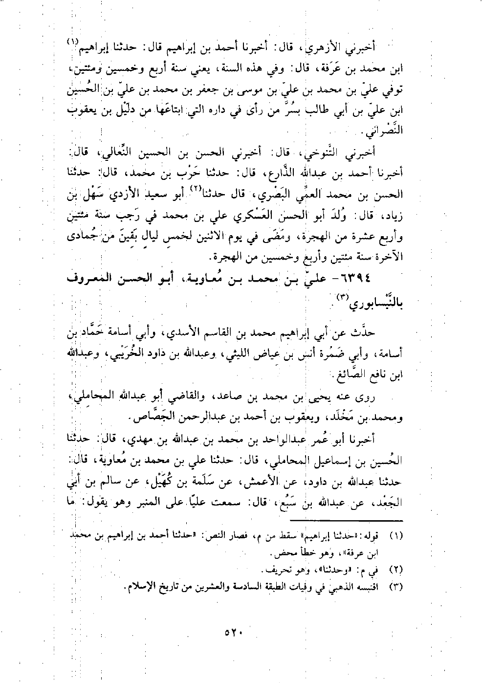 6394 - علي بْن مُحَمَّد بْن معاوية أَبُو الحسن المعروف بالنيسابوري.